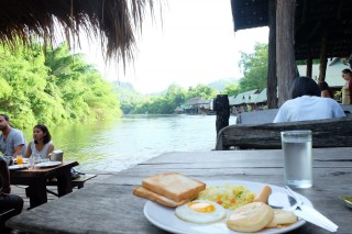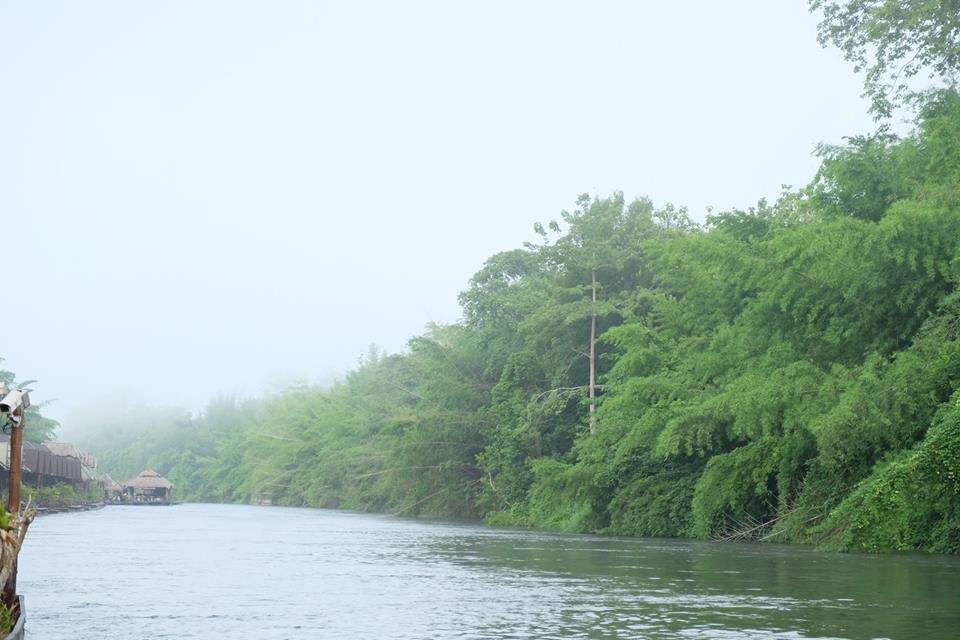 แล้วเช้าวันใหม่ก็มาถึง เวลา 06.30 น. ตื่นมาเจอหมอกขาวกำลังลอยห่มอยู่บนแม่น้ำแคว บรรยากาศโรแมนติกฝุดๆ ไม่รู้จะสรรหาพรรณนาโวหารไหนมาดี ให้ภาพเล่าเรื่องแทนละกันค่ะ