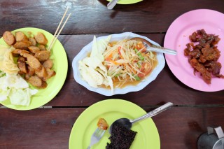 นี่คือโฉมหน้าของอาหารที่สั่งไปแบบเบาๆ ไส้อั่ววุ้นเส้นอร่อยมากกก เอาไปเลย 5 ดาว อย่างอื่นส่วนตัวเฉยๆนะคะ แต่โดยรวมให้ผ่านค่ะ ค่าเสียหายมื้อนี้ 150 บาท ถูกจนน่าตกใจ พออิ่มแล้วก็ไปสถานีรถไฟกันต่อเลยค่ะ จากตรงนี้จนถึงสถานีรถไฟห่างกันประมาณ 800 เมตร เลยนั่งรถสองแถวคนละ 10 บาทต่อเข้าไปที่สถานีรถไฟกันค่ะ
