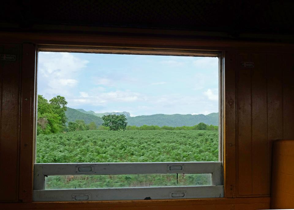 ที่นั่งริมหน้าต่างข้างขวาเห็นจะเหมาะแก่การจับจองเป็นที่สุด พอรถไฟเคลื่อนตัวฉากข้างหน้าต่างก็เริ่มทำงาน อารมณ์เหมือนกำลังนั่งดูหนังหรือสารคดีส่องโลกอะไรอยู่ทำนองนั้นเลยค่ะ แอบบอกก่อนว่านี่เป็นการนั่งรถไฟครั้งแรก เลยตื่นเต้นเป็นพิเศษ ถ่ายรูปวิวเยอะมากจนเมมโมรี่เต็มไม่รู้ตัว 555