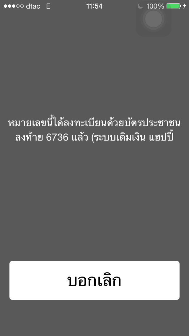 รบกวนเช็คให้หน่อยครับว่าผมได้ทำการลงทะเบียนซิมเรียบร้อยแล้วหรือยังครับ (เหมือนจะเคยไปแจ้งลงทะเบียนไว้แล้ว แต่ขอเช็คเพื่อความชัวร์ครับ) AIS : 098-520-55XX TRUE : 095-668-78XX ขอบคุณล่วงหน้านะครับ