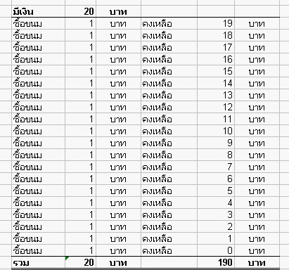 ซื้อขนม 6 บาท คงเหลือ 0 บาท