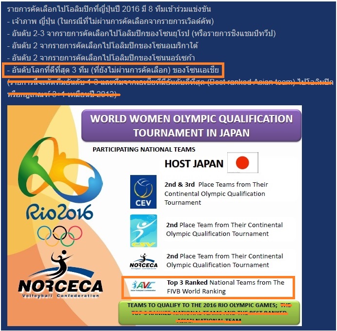 ข่าวเรื่องทีมอันดับโลกของ AVC ได้ไปคัดเลือกโอลิมปิกปี 2016 ออกมาตั้งแต่ปีที่แล้วแล้วครับ