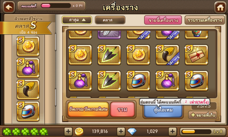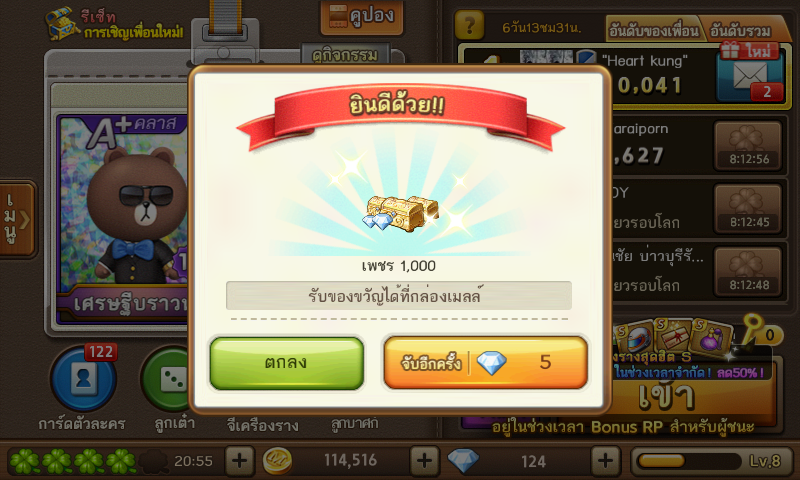 อีเว้นล่าสุด ที่กำลังจะหมดวันนี้ หมดไปเยอะมาก เพชร 2,500 เม็ด ไหนจะสติแตก เติมไปอีกร้อยกว่าบาท (ลด50%) Get Rich นี่ Rich แค่คนทำระบบ งั้นสินะ เติมแล้ว สุ่มแล้ว ไม่เห็นได้อะไรกลับมาเลย แค่นกแร้ง A+ ต