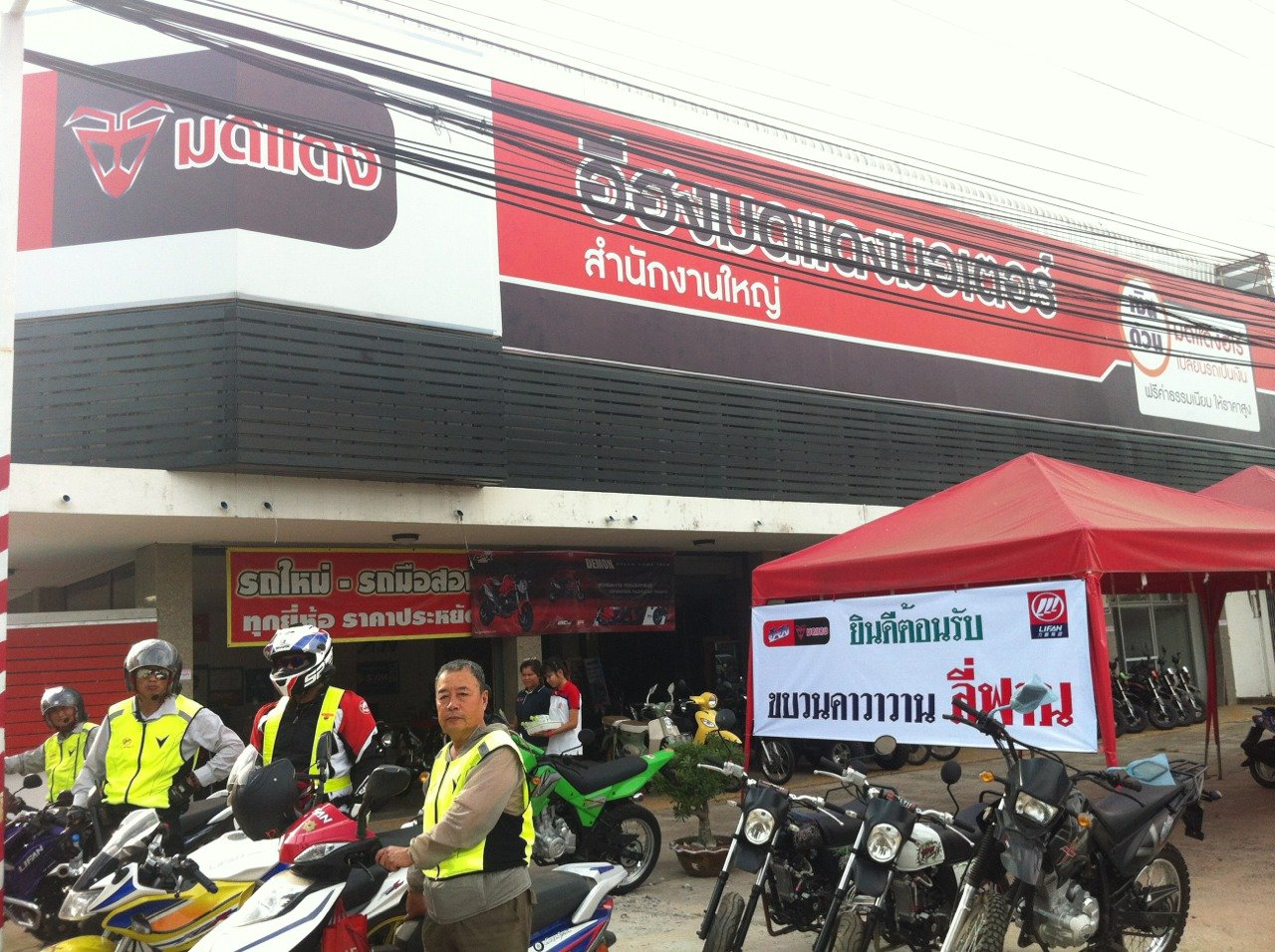 จากนั้นก็ขี่มาเรื่อยๆ ผ่านโกสุมพิสัย เพื่อมาแวะเยี่ยมอีฮงมดแดงมอเตอร์ สำนักงานใหญ่ ร้านตัวแทนจำหน่ายที่ให้การต้อนรับอย่างอบอุ่น ซึ่งมื้อเย็นนี้ตัวแทนเขาขอเป็นเจ้าภาพ ซึ่งบอกเลยว่าร้านอาหารตรงข้ามอีฮงฯนี่อร่อยทุกอย่างจริงๆ