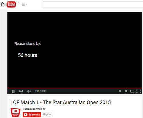 • [BWF Livestream] Court 2 : http://livestream.com/bwfbadminton/sssydney2015court2