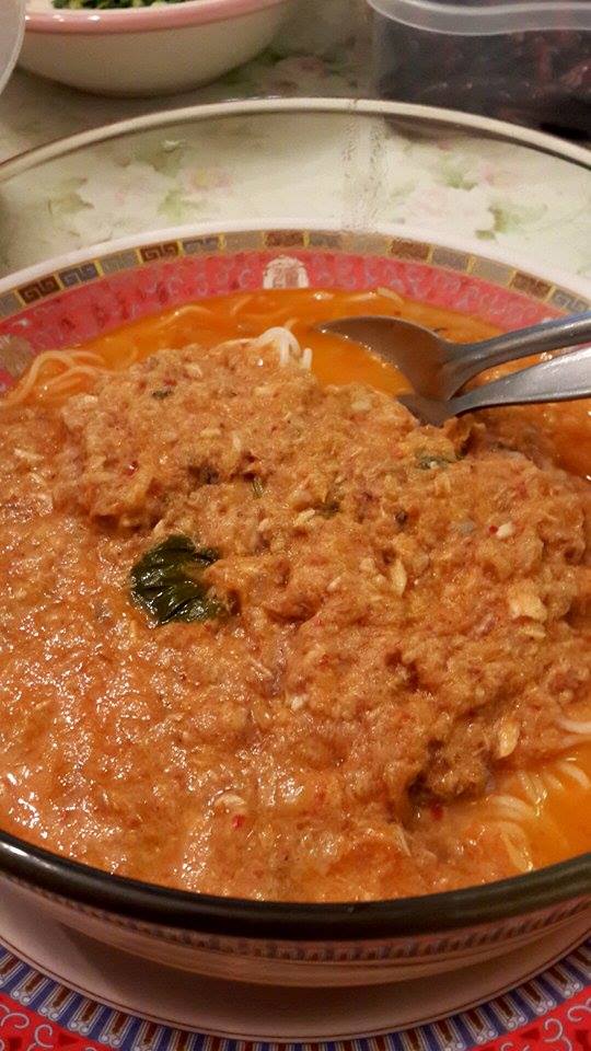 ขนมจีนน้ำยา สีส้มๆง่ะ หากินที่ผสมเนื้อปลาเเท้ๆย๊ากยาก จำไ้ตอนเด็กๆ กินเเบบน้ำข้นๆเลย เนื้อปลาอร่อยมากก บดๆละเอียดๆ สมัยนี้น้ำใสเเจ่ว TT มีที่ไหน เป็นน้ำยาที่ผสมเนื้อปลา เเท้ๆเเน่นๆ บ้างงง
