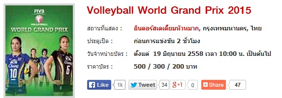 สรุป!!! ฤกษ์จองตั๋วเข้าชมวอลเลย์บอล World Grand Prix สนามกรุงเทพฯ 21-22-23 กรกฎาคม เปิดจองตั๋ว 7 กรกฎาคม 2560 เวลา 10.00น. รับตั๋วได้ตั้งแต่วันที่ 14 กค. ขอขอบคุณ แหล่งข้อมูล: พี่แดง เลขาฯ ท่านสมพร น