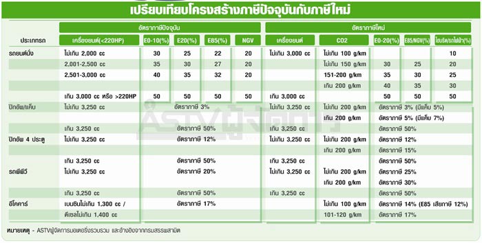 1.จะเลิกเก็บตาม แรงม้าแล้ว 2.จะเก็บตามCo2ของเครื่องยนต์แทน 3.ยกเว้นเครื่อง3000cc ขึ้นไปก็จะโดนหนักเหมือนเดิม เท่าที่ดูนั้นแนวโน้มรถปีหน้าที่กำลังจะมาจะเป็นแนวพวกเครื่องเล็กปต่ให้กำลังเยอะนั้นก็คือ &