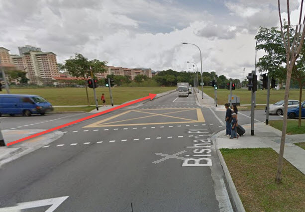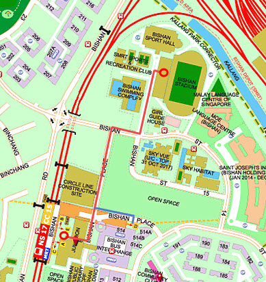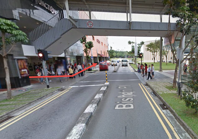 ส่วนท่านที่เดินทางมาโดยรถไฟฟ้าสายสีเหลือง (Circle Line) เมื่อถึงสถานี Bishan MRT แล้วให้ท่านเดินออกไปที่ประตูทางออก Exit D ได้เลยครับ (ไม่ต้องเดินย้อนไปยังรถไฟฟ้าสายสีแดงนะ) หลังจากออกมาแล้ว ให้เดินย้อนกลับไปด้านซ้ายมือจนเจอกลับถนนหลัก Bishan Place ครับ (เจอสี่แยกด้านซ้ายมือตรงข้ามจะเป็นห้าง Junction 8 Shopping Centre ให้ท่านข้ามถนนไปทางขวามือครับ หลังจากนั้นก็เหมือกับวิธีที่ผมอธิบายไปตอนแรกเรียบร้อยแล้วครับ เพราะเป็นเส้นทางเดียวกัน