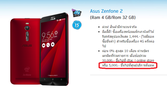 ผ่อน 0% สูงสุด 24 เดือน ผ่านบัตรเครดิตที่ร่วมรายการ เมื่อช้อปรวม 10,000.- ขึ้นไปที่ dtac | online store หรือ 5,000.- ขึ้นไปที่ศูนย์บริการดีแทค ไปดูในเว็บดีแท็คม