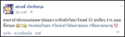 29 พ.ค. 58 ผู้สื่อข่าวรายงานว่า นายสกลธี ภัททิยกุล อดีตแกนนำ กปปส.ได้โพสต์ข้อความลงบนเฟซบุ๊คส่วนตัว "สกลธี ภัททิยกุล" ระบุถึง พ.ต.ท.ทักษิณ ชินวัตร นักโทษหนีคดีตามหมายศาล ที่ได้โพสต์อินสตาแกรมส่วนตัว @thaksinlive ระบุถึงกรณีกระทรวงการต่างประเทศดำเนินการยกเลิกหนังสือเดินทาง รวมทั้งบอกด้วยว่า ได้นั่งแผ่เมตตาให้กับผู้มีอำนาจทั้งหลาย ได้พ้นจากความโลภ โกรธ หลง
