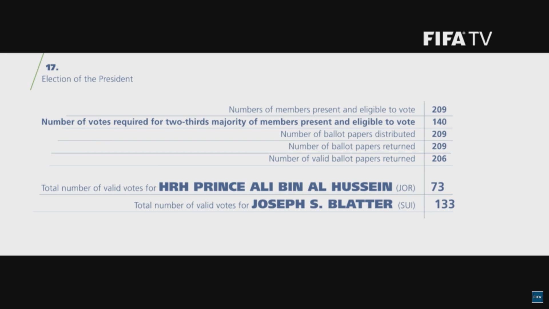ด่วน !!! ผลโหวตประธานฟีฟ่า (ซ้ำขออภัยครับ)