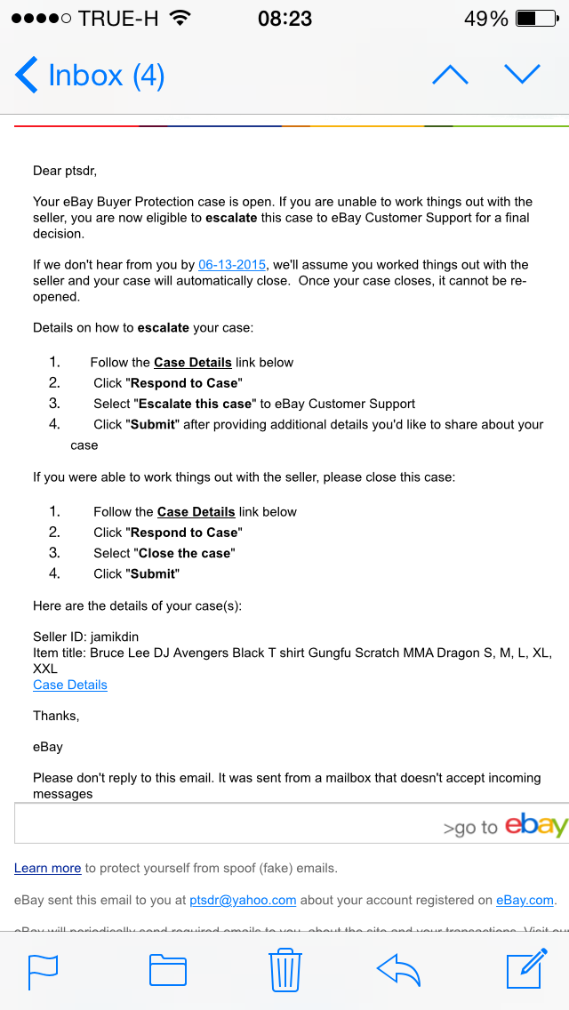 รบกวนช่วยดูให้หน่อยซื้อของอีเบย์ไปแล้วไม่ได้ของเปิด Open Case ไปแล้วอีเบย์ตอบกลับมาแบบนนี้ครับ
