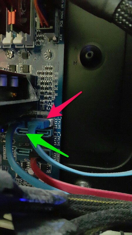 เมนบอร์ด คือ ga b75m d3v มีช่องเสียบ sata 6 ช่อง sata3 ตำแหน่ง 0 sata2 1 sata2 2 sata2 3 sata2 4 sata2 5 .......... - สาย sata2 ที่เสียบ hdd มันเสียบอยู่ที่ sata2 ตำแหน่ง 2 - สาย sata2 ที่เสี