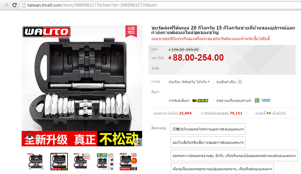 ตามมาครับ เลือกซื้อได้มาอีกชิ้นครับ เป็นดรัมเบล น้ำหนัก20กิโล ราคา203หยวนเองครับ ตกอยู่ที่ประมาณ1,100บาทครับ