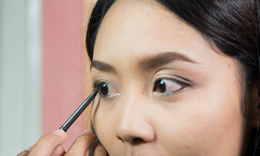 - เขียนขอบตาทั้งด้านบนและด้านล่างโดยเขียนให้ชิดเส้นขนตามากที่สุดด้วย Cosluxe Auto Pencil Eyeliner สีดำ (อันนี้ใช้ดีมากกกก จริงๆค่ะ ไม่หลุดไม่แพนด้า แนะนำให้ไปตำกันแล้วจะติดใจ)