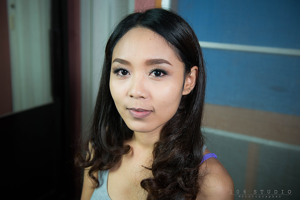 - เขียน eyeliner ที่ขอบตาด้านบน ดัดขนตา ปัดมาสคาคาร่า และติดขนตาปลอมค่ะ