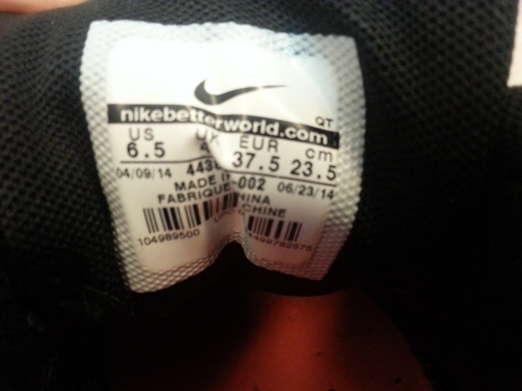 ไซส์ US 6.5 UK 4 EUR 37.5 (23.5cm) สีดำล้วนทั้งคู่ พื้น+เชือก = ดำ ครึ่งล่างเป็นสีดำเมทาลิค พื้นด้านในสีชมพูสะท้อนแสง ตัวรองเท้าไม่หนัก