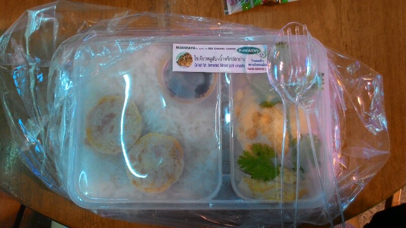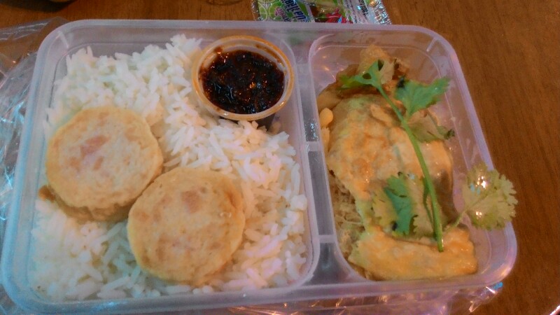 ราคาค่อนข้างสูงกว่าข้างนอก จัดข้าวกล่อง ไข่เจียวหมูสับ+น้ำพริกปลาย่างมา 1 กล่องค่ะ ราคา 60 บาท