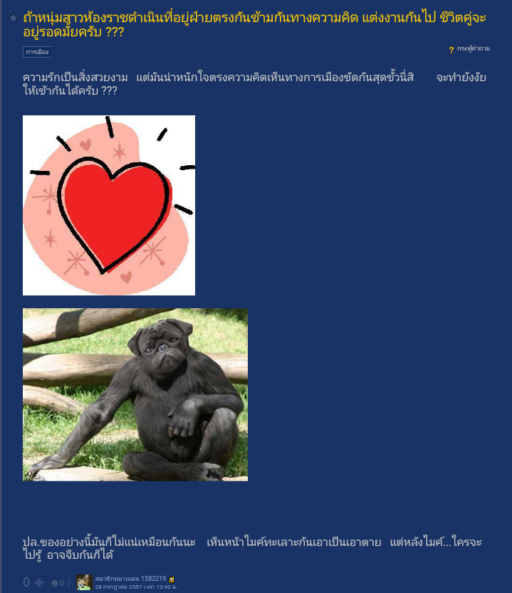 เพื่อนๆว่า มันจะมีปัญหามั้ยครับ ผมกลัวเหลือเกิน กลัวว่าการเมืองจะทำให้ชีวิตครอบครัวเราพังพินาศ ในวันหนึ่ง