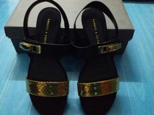 2.รองเท้า Charles & Keith ดำคาดทอง สวยมากๆ ค่ะ เบอร์ 37 แต่คนใส่ 38 ใส่ได้ค่ะ ยาว 24.50 นิ้ว ซื้อมาไม่เคยใส่ ขาย 800 บาทมีกล่อง มีส้นสูงประมาณ 1 นิ้ว