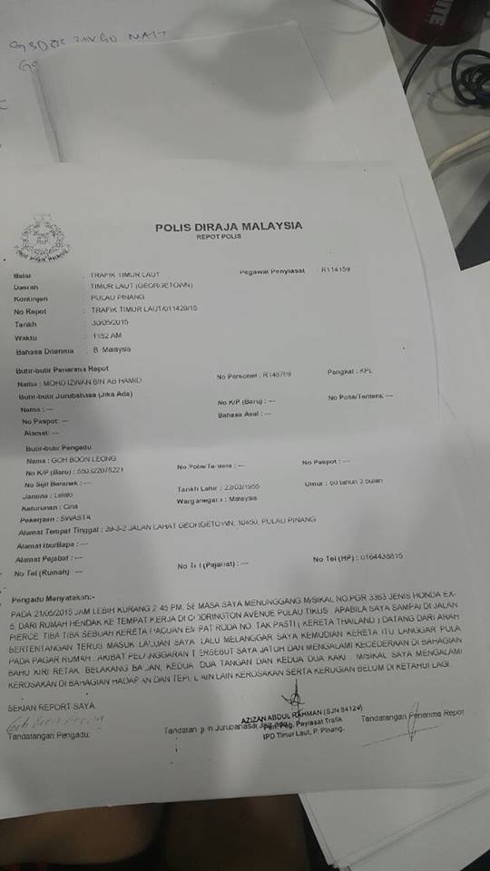 มีเพื่อนที่ประเทศมาเลเซีย ติดต่อขอความช่วยเหลือ ครับ เนื่องจากลุง ของเค้าขับมอเตอร์ไซต์แล้วถูกรถกระบะ TOYOTA VIGO ทะเบียน 1กถ2504 กรุงเทพมหานคร พุ่งชนเข้าอย่างจังขึ้นมาบนฟุตบาท ทำให้ ลุงได้รับบาดเจ็บ เหตุเกิดที่ถนน Coddington Avenue เมืองปีนัง ประเทศมาเลเซีย เมื่อวันที่ 21 May 2015 เวลา 02:45 P.M. และสิ่งที่ไม่คาดคิดคือ ผู้หญิงคนที่ขับรถกระบะได้ทิ้งรถไว้ตรงนั้นแล้ววิ่งหนีไป ทำให้ทางตำรวจไม่สามารถติดตามคู่กรณีได้ และไม่รู้ว่า เป็นคนไทย หรือ คนมาเลเซีย ที่ขับรถคันเกิดเหตุ ตอนนี้ลุงของเพื่อนได้รับบาดเจ็บหนักและไม่มีประกัน และไม่สามารถติดตามคู่กรณีได้ จึงอยากรบกวนเพื่อนๆ ช่วยประชาสัมพันธ์ให้หน่อยครับ เผื่อใครรู้จักเจ้าของรถคันนี้ หรือ ได้แจ้งรถหายไว้ขอให้ติดต่อกลับด่วน ตอนนี้เดือนร้อนครับ สงสารลุงเพื่อนด้วยอาการหนักครับ ตอนนี้ได้แจ้งความไว้แล้วที่สถานีตำรวจปีนังเมื่อวันที่ 30 May 2015