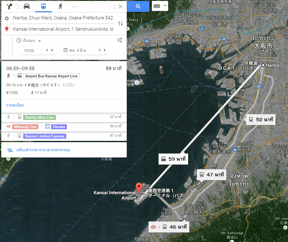 พอเปิดกูเกิ้ลหาเส้นทางกลับ มันมีเส้นทางAirport Bus Kansai Airport Line ตัดมากลางอ่าวเลย ซึ่งทางนัมบะก็มีเหมือนกัน เลยขยายทางจะดูสักหน่อย