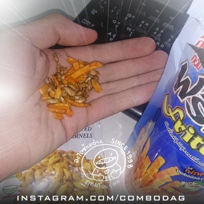 ของกิน : ป๊อปคอร์นเถ้าแก่รสสาหร่ายเถ้าแก่ (เซปชั่นมั้ยละครับ) / คอร์นเฟลคฟรอสตี้ (ทุกวันเราชาร์จ!)