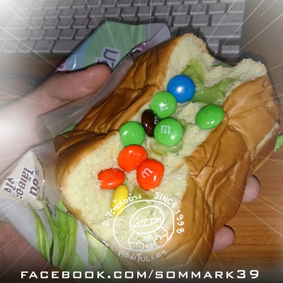 ของกิน : ขนมปังสังขยาทริโอ / m&m