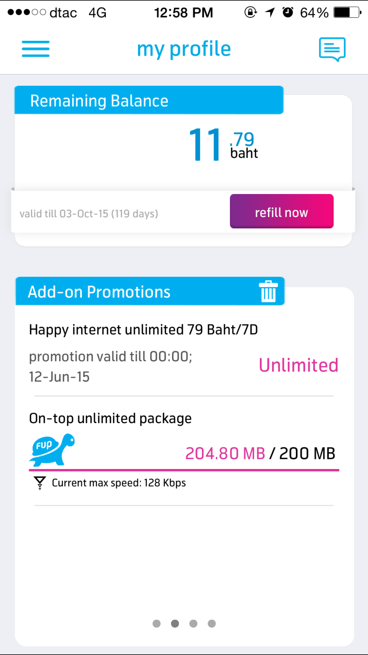 สังเกตุว่า FUP dtac 4G ติดที่ 128 kbps ไมมันเร็ว