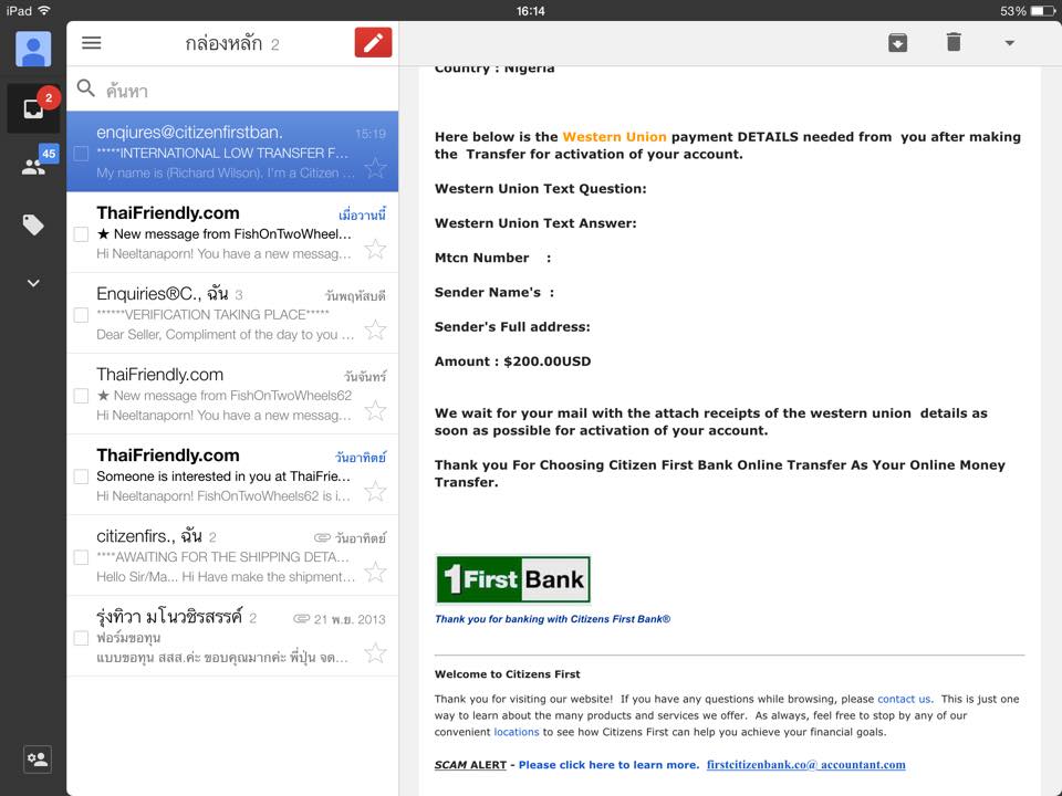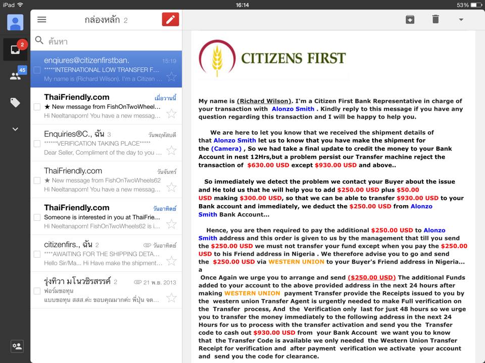 สวัสดีครับ เรื่องเกิดขึ้นสดร้อนๆ เมื่อไม่กี่วันทีผ่านมาครับ (ผมเพิ่งทราบไม่ี่กี่ชั่วโมงที่ผ่านมา) หลานสาวของผมได้ถูกฝรั่งที่รู้จักกันทางเน็ต (ยังไม่เคยเจอกัน) ให้โอนเงินให้เป็นจำนวนหลายหมื่นบาทเมื่อห้