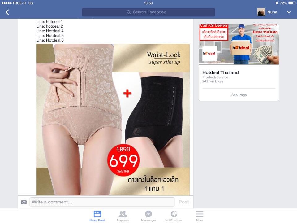 ปกติจั่นไม่ค่อยมีเวลาไปเดินซื้อของมากนัก การซื้อของผ่านร้านในอินเตอร์เน็ตจึงเป็นทางเลือกที่น่าสนใจ จั่นเห็นโฆษณาขายกางเกงล็คเอวเล็กในเฟสบุ๊คจึงตัดสอนในซื้อกับเพื่อน ซื้อมาครั้งแรกแล้วชอบมาก จึงตัดสินในซื้อเพิ่ม