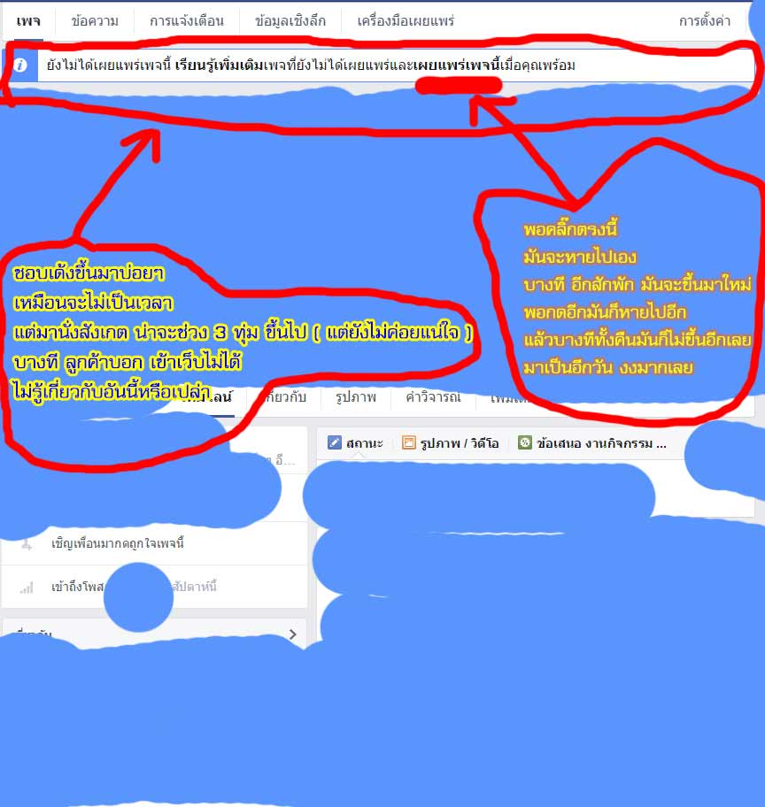 มันชอบขึ้นมาว่า " ยังไม่ได้เผยแพร่เพจนี้ เรียนรู้เพิ่มเติม เพจที่ยังไม่ได้เผยแพร่และ เผยแพร่เพจนี้ เมื่อคุณพร้อม "
