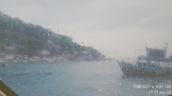 เรือก็แวะรับ - ส่งนักท่องเที่ยวที่เกาะนางยวนก่อน ฝนก็โปรยมาเบา ๆ พอให้กระจกเปียก