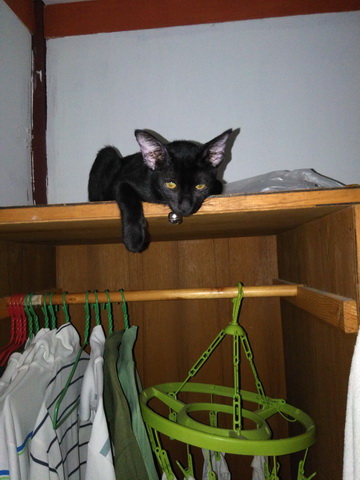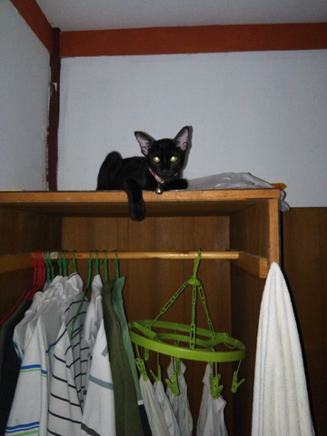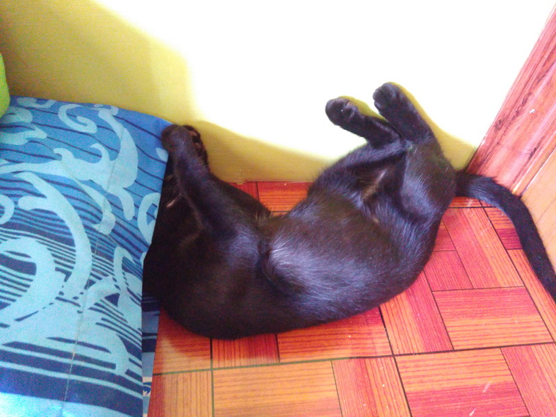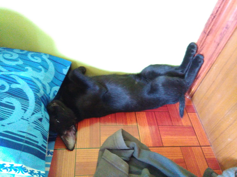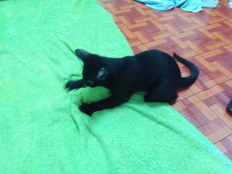พอดีมีแม่แมวจรจัดแถวบ้านเพื่อนไปคลอดลูกไว้ 3 ตัวในบ้านคนอื่นระหว่างที่เจ้าของบ้านไปทำงานต่างจังหวัด ตอนนี้เจ้าของบ้านเค้ากลับมาแล้วแม่แมวเลยต้องหอบลูกหนีหัวซุกหัวซุนมาอาศัยหลบบ้านเพื่อนเรา เพราะครั้ง