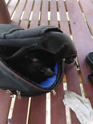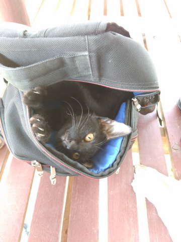 เธอเป็นแมวจรจัด ลูกสาวเก็บมาจากโรงเรียนวันสุดท้ายก่อนปิดเทอม เพราะกลัวว่าหลังโรงเรียนปิดแล้วเธอจะไม่มีอะไรกิน ก็เลยได้มาเป็นสมาชิกในครอบครัวเราอีกหนึ่งตัว วันนี้พอมีเวลาว่างเลยพาเธอนั่งรถเที่ยวๆกินลมช