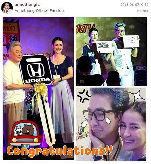 และผู้โชคดีที่ได้รางวัลนี้ไปคือ "แอน ทองประสม" นั่นเอง เรียกว่าเป็นบุคคลที่ดวงเฮงสุดๆ ในงานนี้เลยก็ว่าได้ จากภาพจะเห็นว่า แอน ทองประสม ได้ขึ้นเวทีไปพร้อมๆ กับ ไก่ วรายุฑ แต่สุดท้ายเธอโชคดีสุดๆ ไปเลย