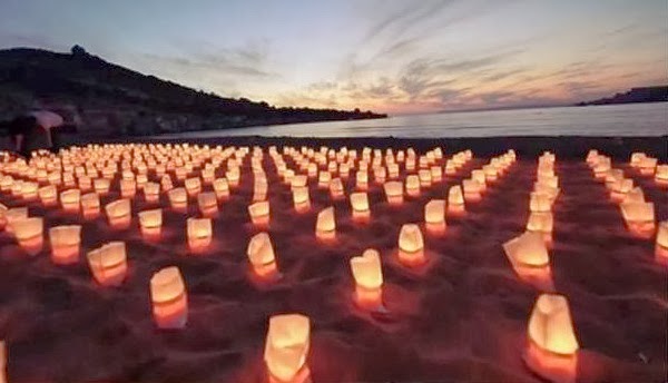 เค้าจะวางโคมไฟไว้ที่บริเวณชายหาดด้านใต้ของท่าเรือค่ะ