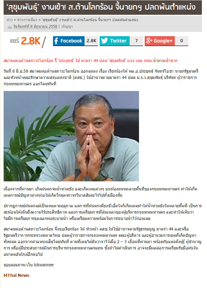 จึงเสียท่าชนิดไม่น่าให้อภัย ให้มันทำน้ำท่วมกรุงเทพฯเสียได้..หยามกันเกินไปแล้ว