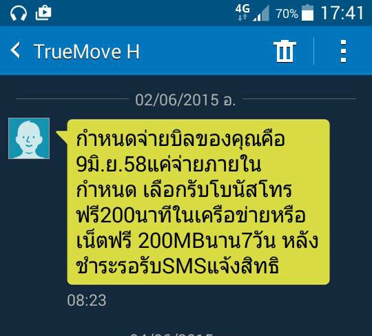 ทรูส่งsms มาให้ชำระบิลภายในกำหนดมีโปรโมชั่นให้ แต่เมื่อชำระแล้วกับแจ้งอีกอย่าง