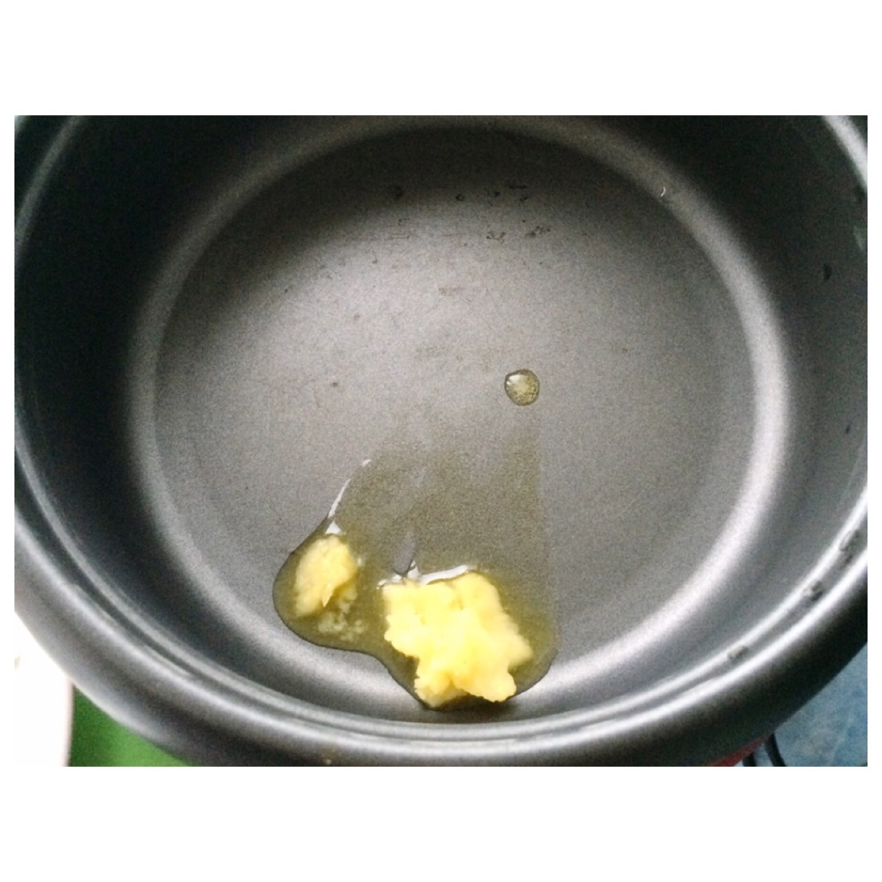 เราจะมาตั้งกระทะให้ร้อนก่อนนะคะ จากนั้นใส่เนยจืดลงไป