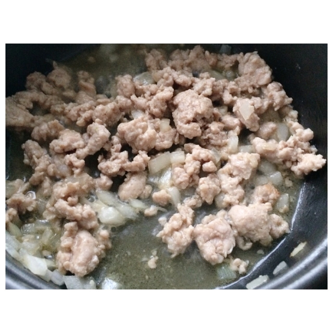 ต่อด้วยหมูสับ ใส่ลงไปเลยค่ะ ชอบเยอะชอบน้อยก็ตามที่ชอบเลยค่า
