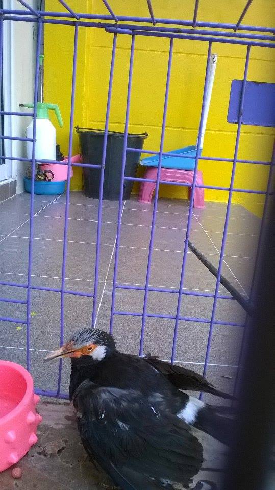 ตอนนี้คือเอากรงที่เคยมี ใส่นกตัวนี้ไว้ อีกบ้านเอาอาหารนกขุนทองมาให้ แล้วก็ใส่น้ำไว้ให้เค้า