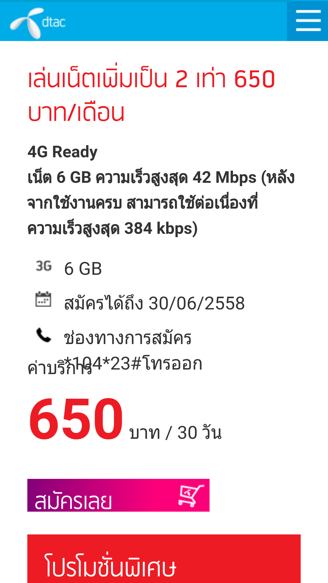 ใช้โปรเนตของ happy 650 บาท/เดือน มาเนิ่นนานสี่ห้าปีแล้วทั้ง ไม่เคยรู้ว่ามีจำกัดการใช้งานทั้งหมดด้วย หลังจากใช้ 4 G ความเร็วสูงครบ 6 GB ตามโปรแล้วจะลดลงเหลือ 384