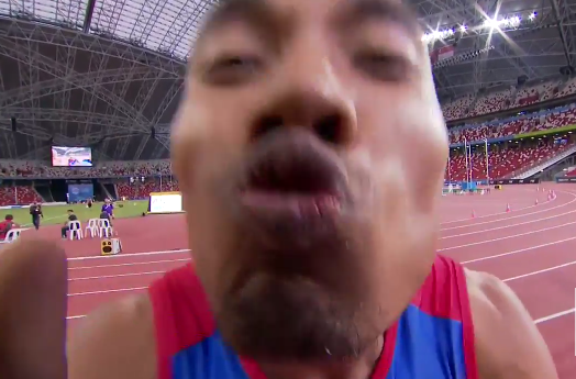 น้องตระโกนถามคนไทยที่เชียร์อยู่ข้างสนามว่าใช่มั้ย