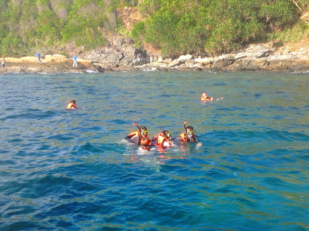 หลังจากที่ถ่ายรูปและเล่นน้ำกันพอสมควรแล้ว เรือที่จะพาเราไปดำน้ำก็มารับที่หน้ารีสอร์ทพอดี
