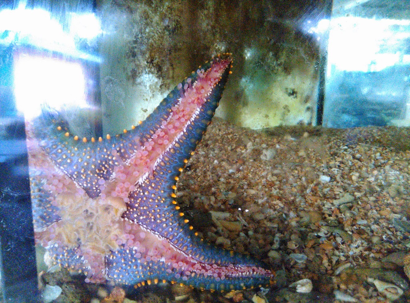 จากสุสานหอย ขี่รถกลับทางเดิม ผ่านศูนย์วิจัยและพัฒนาประมงชายฝั่งกระบี่ ซึ่งสภาพก็ดูเหมือนจะปิดแล้ว แต่พอขี่รถเข้าไป อ้าว ยังเดินได้ ขอดูซะหน่อย ที่นี่แบ่งออกเป็น 2 โซน เป็นโซนปิด อยู่ในแทงก์ ในตู้ เป็นสัตว์เล็ก ปลาการ์ตูน ปลาดาว กุ้ง สภาพก็ทั่วๆไปฮะ ปล่อยผ่าน ส่วนโซนเปิด จะเป็นบ่อเลี้ยงอยู่บริเวณรอบๆทางเดิน ซึ่งใหญ่มาก มีฉลามน้อยด้วย แต่ตอนไป ไม่ยอมโผล่ออกมาให้เห็นเลย