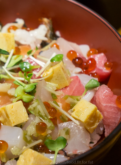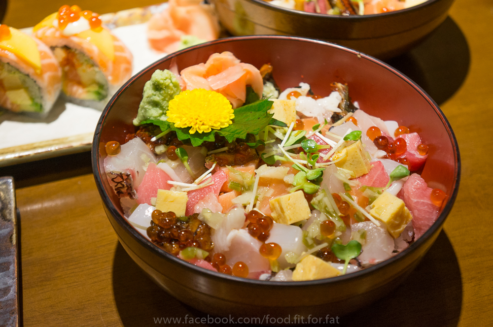 ปลาดิบรวม ซึ่งผมว่าโคตรคุ้มเลยครับ ได้ปลาดีๆ เพียบเลย ราคาเต็า 690 บาท ได้โทโร่ น่าจะส่วนค่อนไปทางชูโทโร่ ได้ madai ikura salmon tamago ผสมกันมา รีวิวแตกเป็นครึ่งๆ สองคน แบ่งกันกินชามนี้ บอกว่า อร่อยดี อีกคนโซ้ยเองจนหมด บอกว่า ชูโทโร่ นั้นดีจริง ส่วนปลาชนิดอื่นๆ เฉยๆ ikura จืดไป ซะงั้น !!!