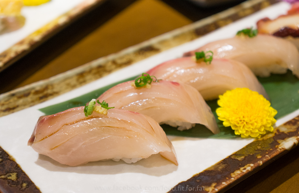 ผมอยากกิน kinmedai กับ shimaaji ที่หลายรีวิว recommend มา ปรากฏว่า kinmedai หมดตั้งแต่วันแรกที่เข้า (ก่อนวันที่มากิน) ให้เค้าแนะนำ เชฟเลยบอก madai ละกัน เนื้อปลานั้นทำมาดีมาก สด เด้ง สังเกตว่า nigiri เกือบทุกคำป้ายโชยุมาให้แล้ว แต่ผมว่าบางไปนิดนึง แล้วก็ไม่แน่ใจว่า madai คำนี้มีปรุงอะไรเพิ่มรึเปล่า กลิ่นเลยออกมาแปร่งๆไปหน่อย