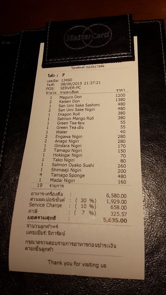 ส่วนบรรยากาศก็ธรรมดา ทั่วไปๆ บริการดีครับ คอยแนะนำตลอด สอบถามได้ด้วยความเต็มใจ คอยเติมน้ำชาให้ตลอด ไม่พร่องเลย อาจมีงงๆ ขาดตกบางคำบ้าง อาจเป็นเพราะพวกผมสั่งกันหลายรอบจัด ซ้ำบ้างไม่ซ้ำบ้าง อยู่ในเกณฑ์ที่รับได้ ส่วนเรื่องราคานี่ ก็ค่อนข้างตกใจอยู่ otoro 460 แล้วมี ++ อีก เป็นต้น มันดูพรีเมี่ยมมากๆ เลยนะครับ ราคานี้ ยังดีที่มีโปรฯ อยุ่ช่วงนี้ บวกกับรสชาติที่ผมว่าดี ก็บาลานซ์กันไปได้ล่ะคร้าบบ